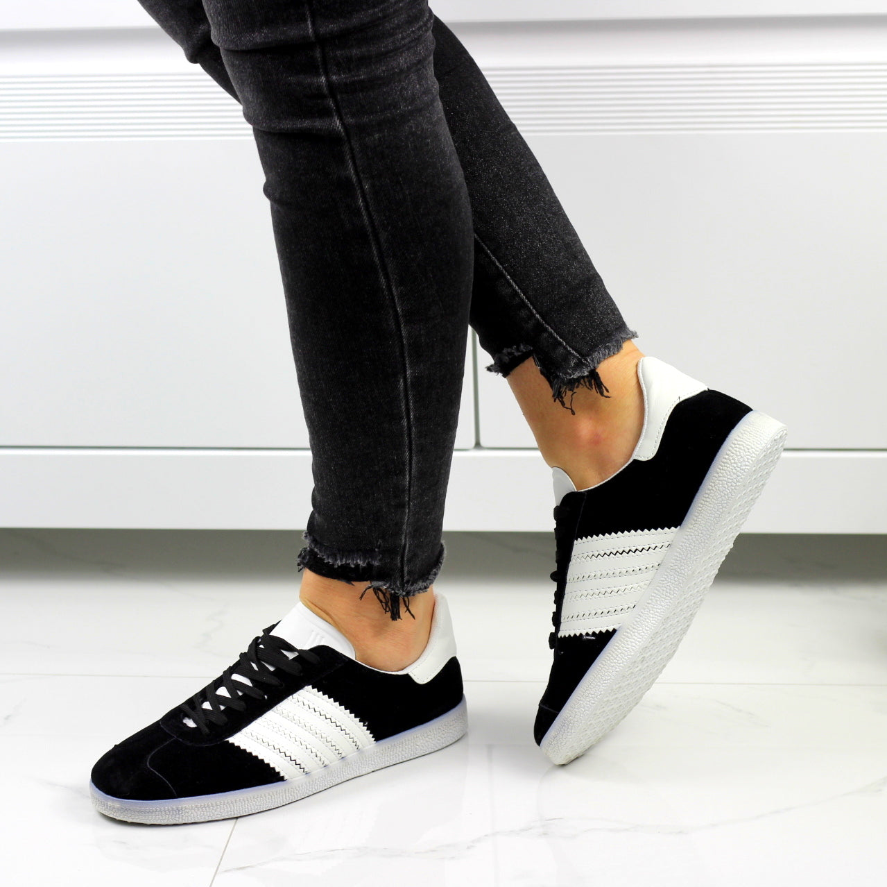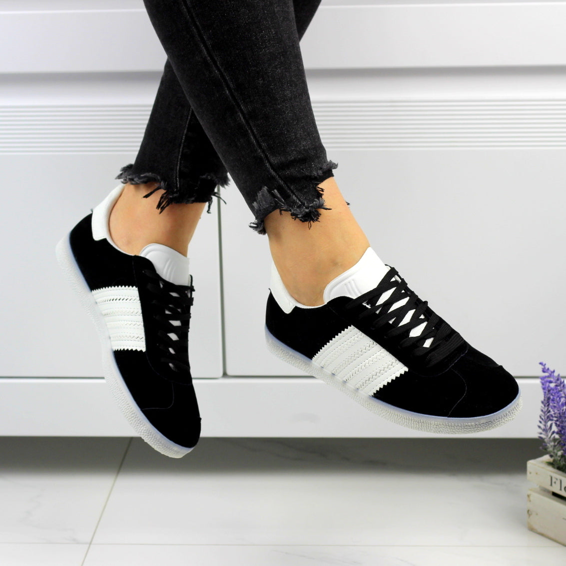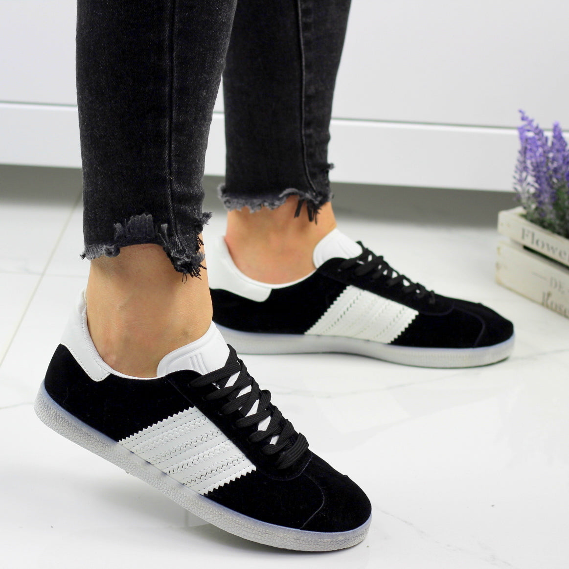 Czarne tenisówki damskie sznurowane z paskami