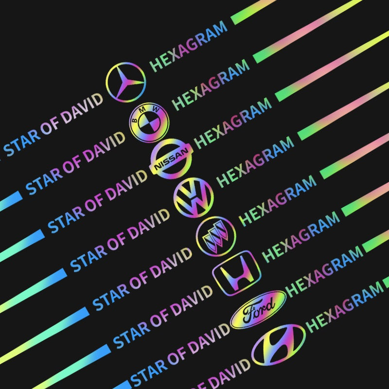 4*Kolorowa, laserowo odblaskowa naklejka na samochód