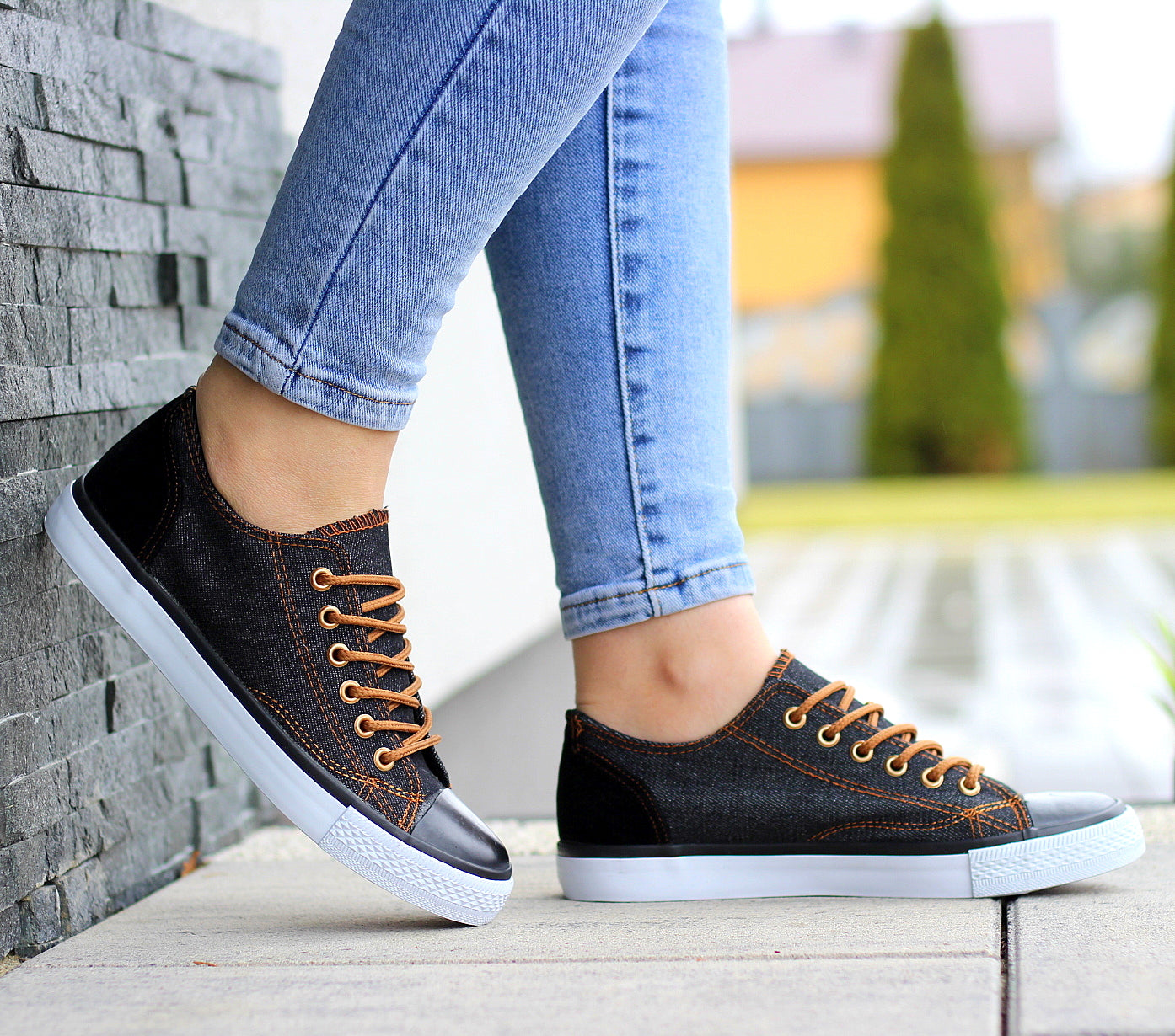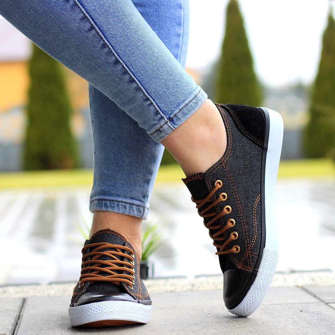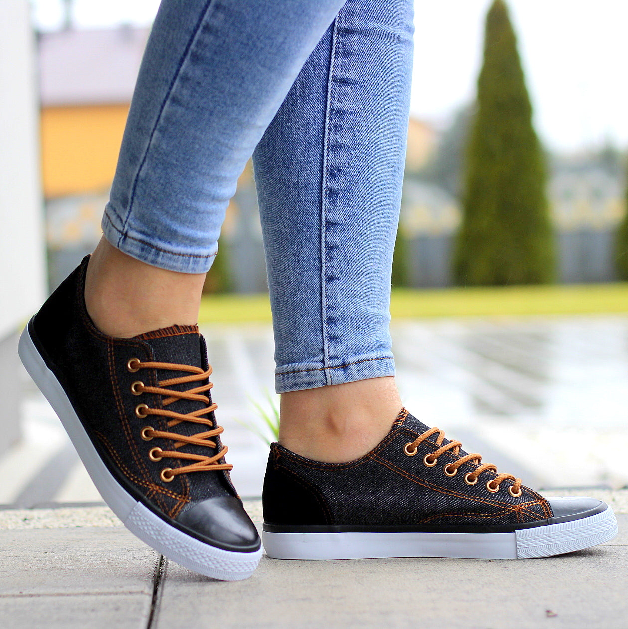 Jeansowe Sznurowane Sportowe Tenisówki Trampki Damskie black