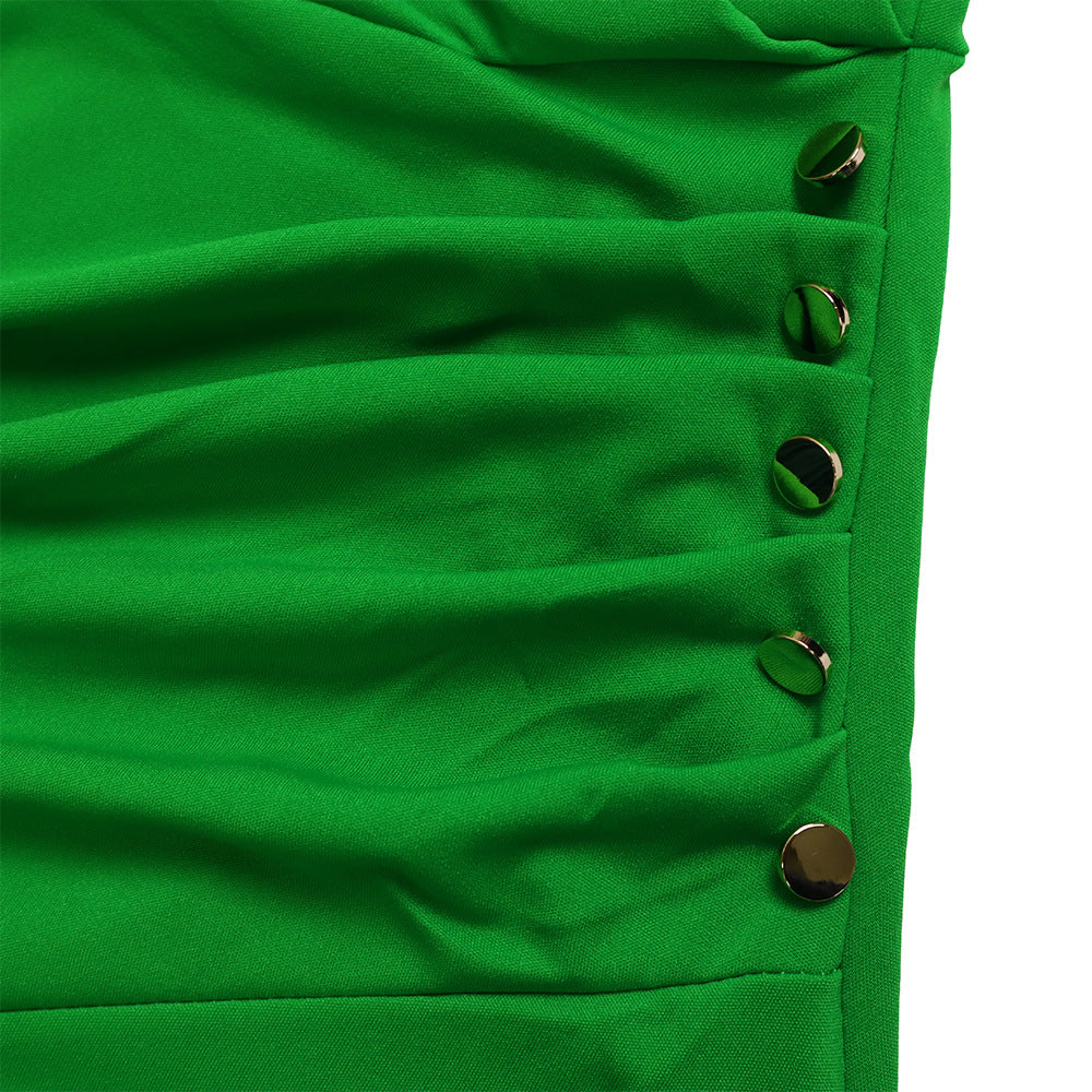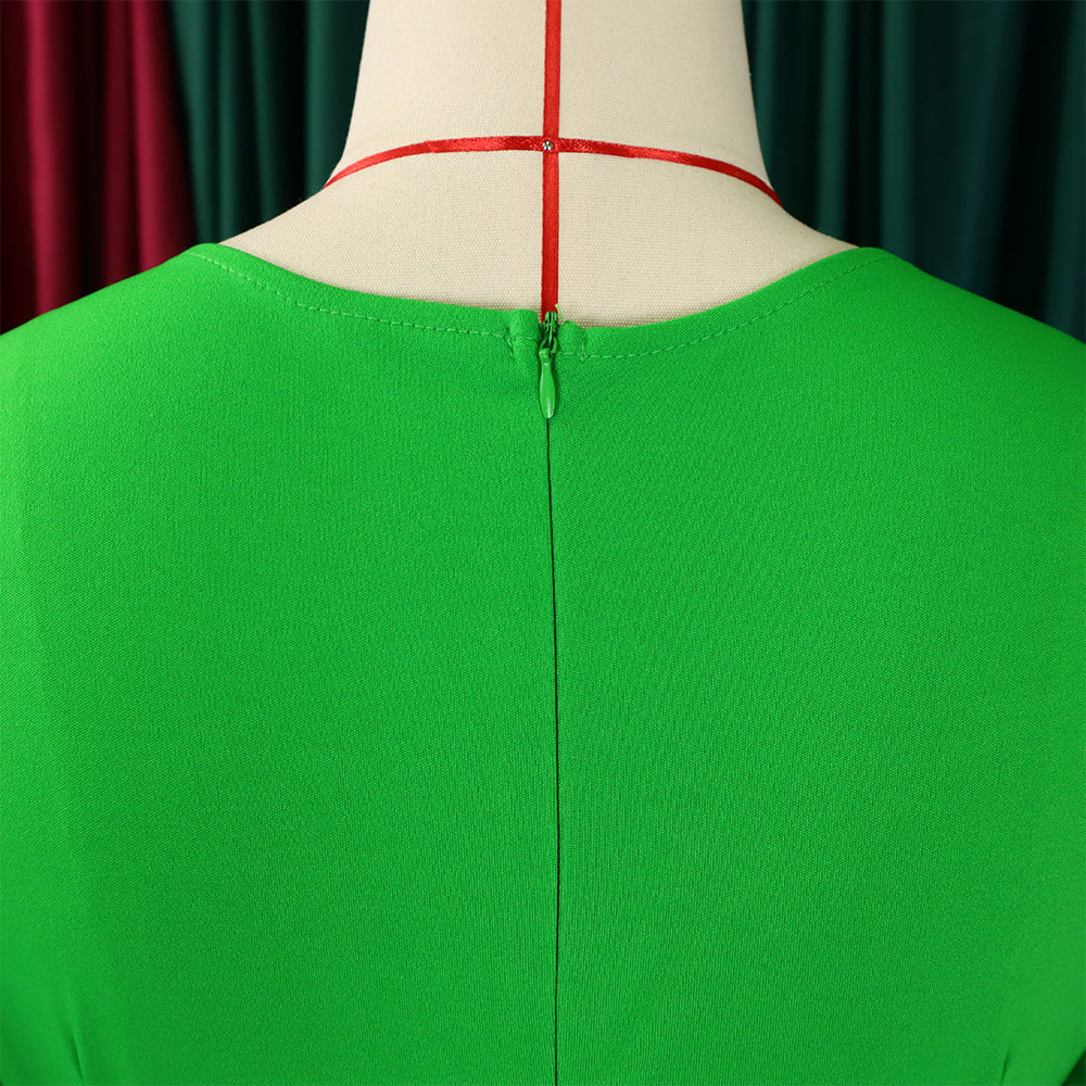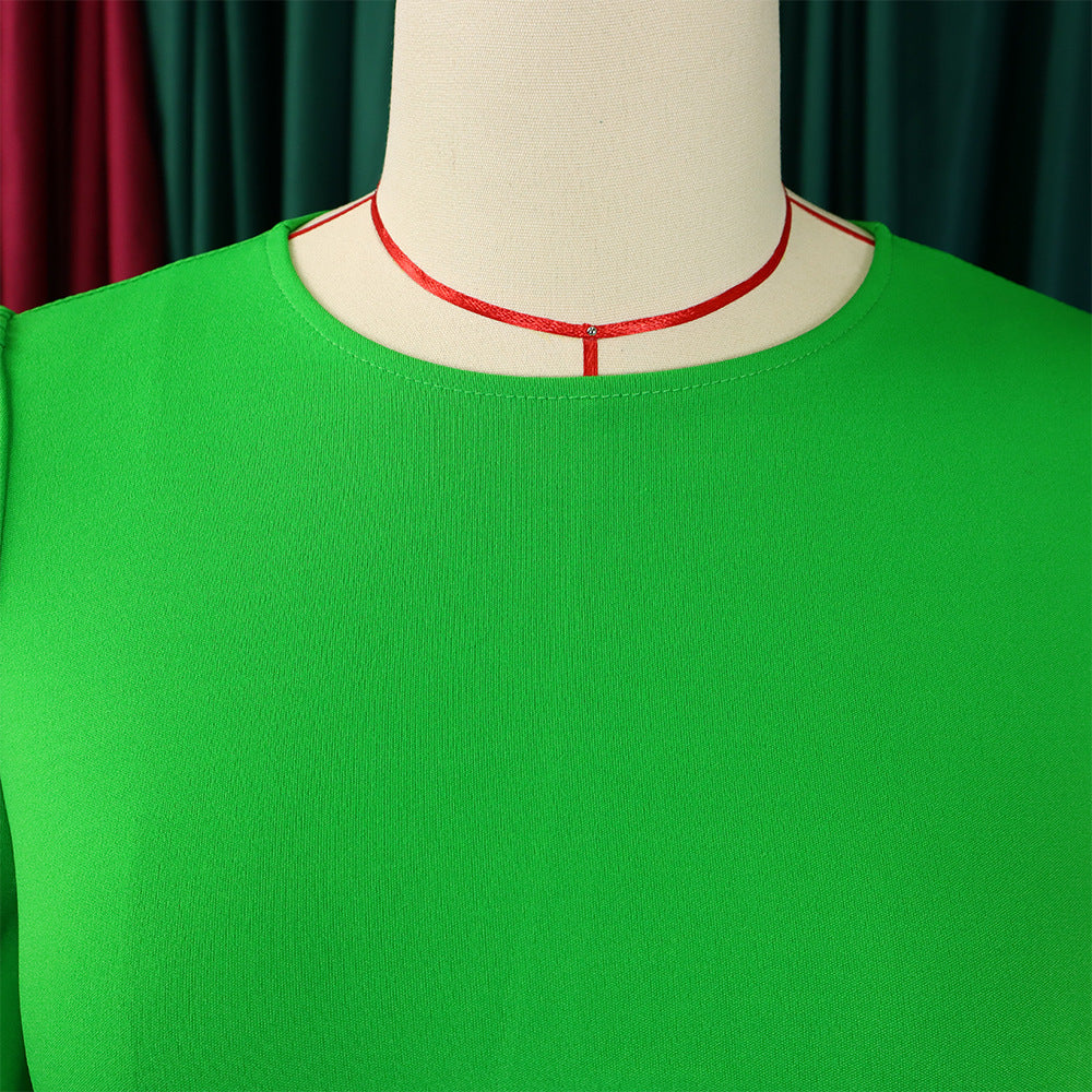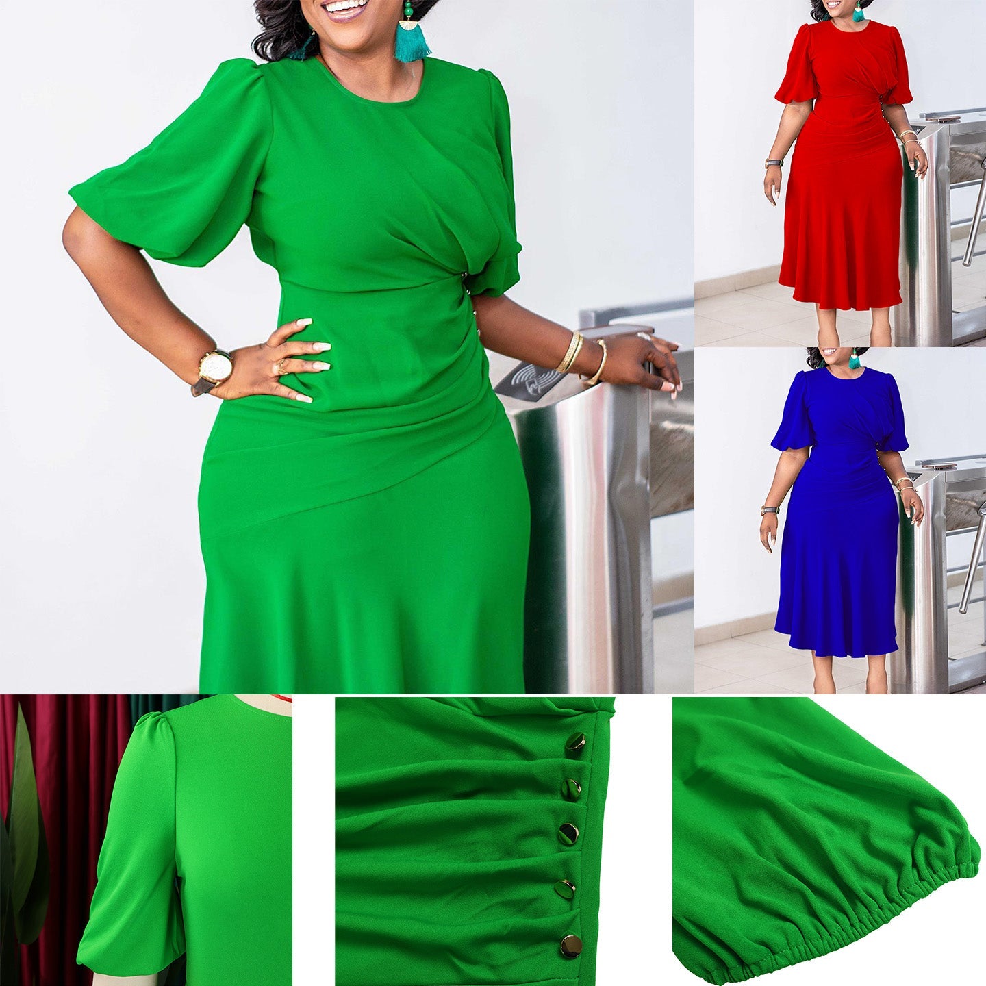 Jednokolorowa sukienka z okrągłym dekoltem i bufiastymi rękawami, wąska talia plus rozmiar