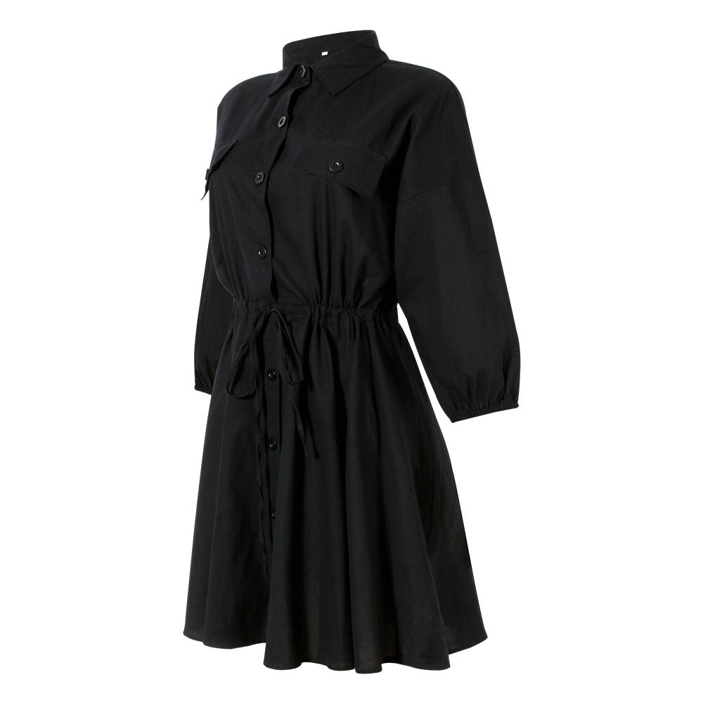 Jednorzędowa koszula z klapami i sukienka dresowa z wiązaniem na plecach