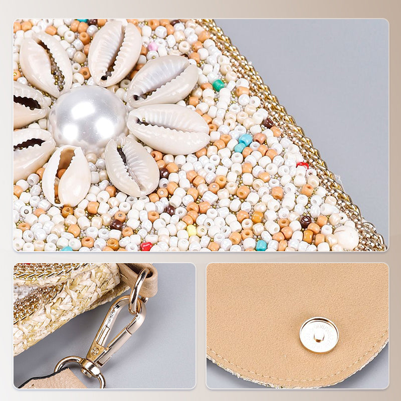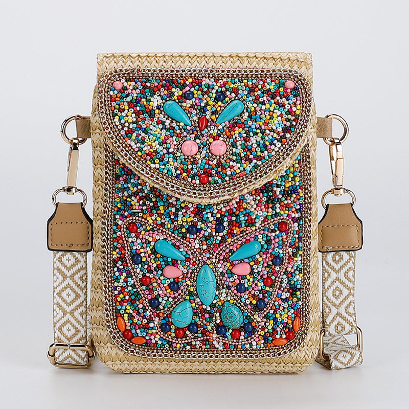 Boho Chic Mała Słomiana Torebka z Koralikami