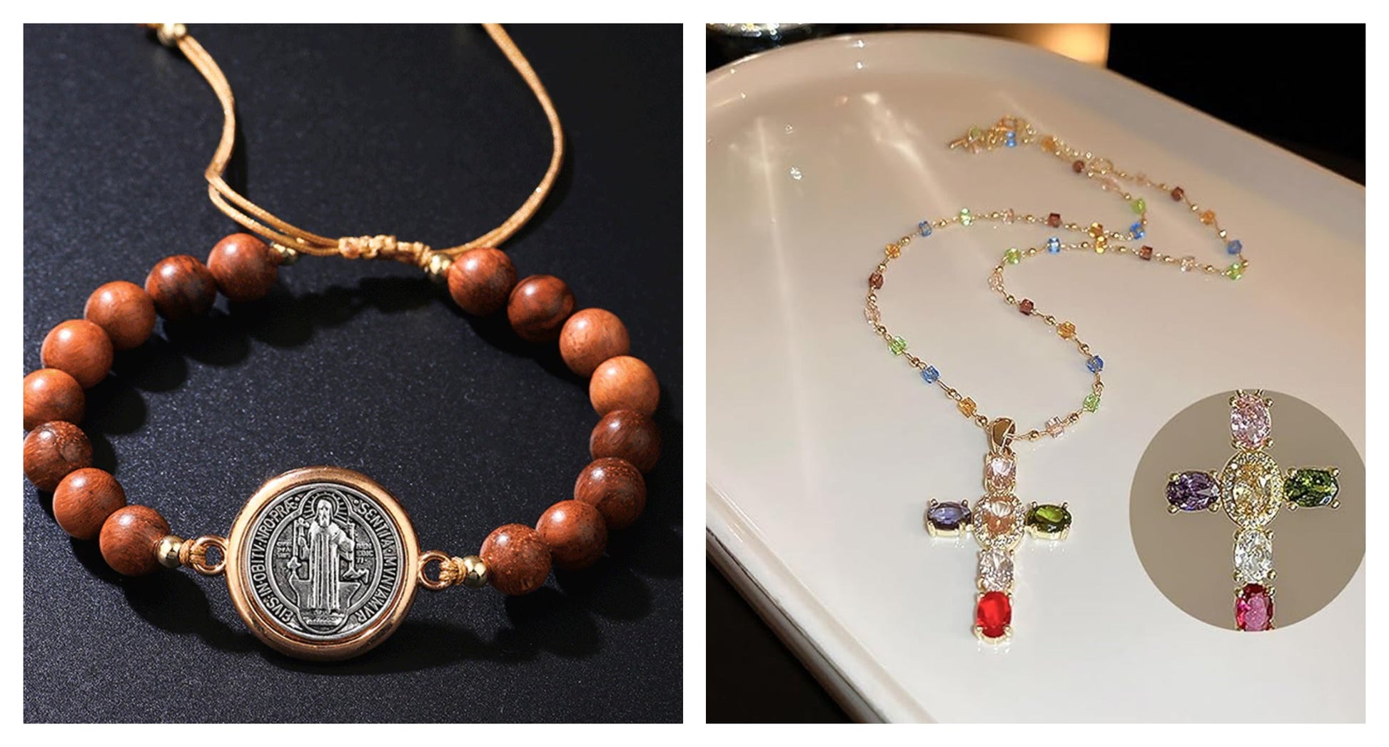 Zawartość opakowania: 1 × unisex, regulowana drewniana bransoletka z koralikami Świętego Benedykta