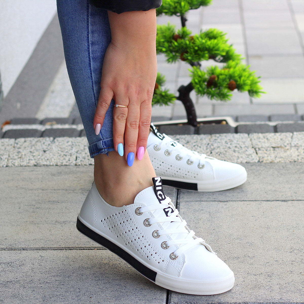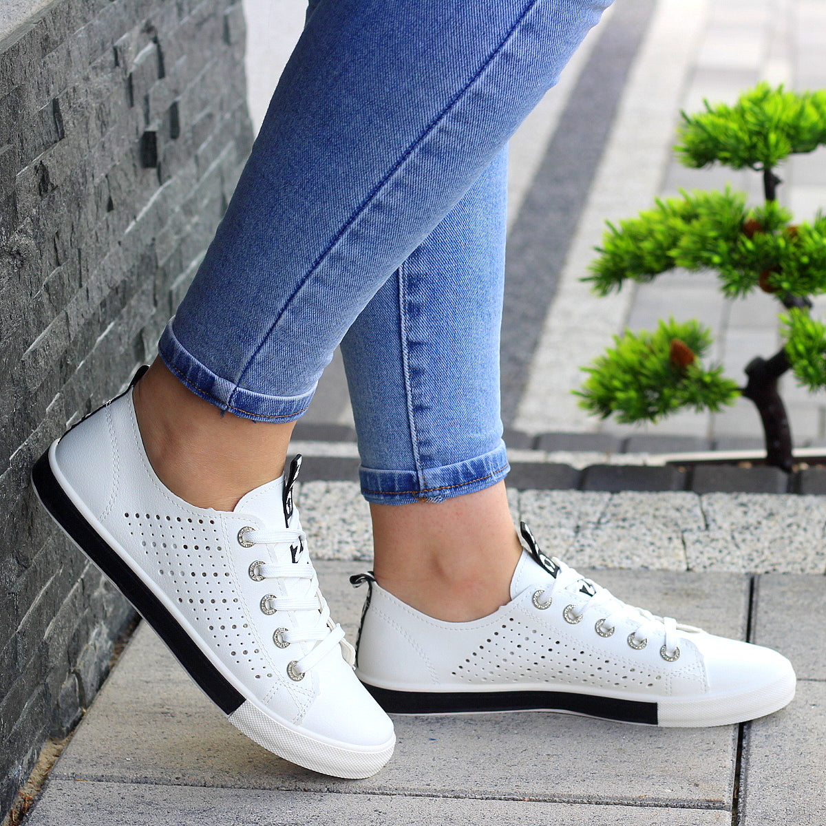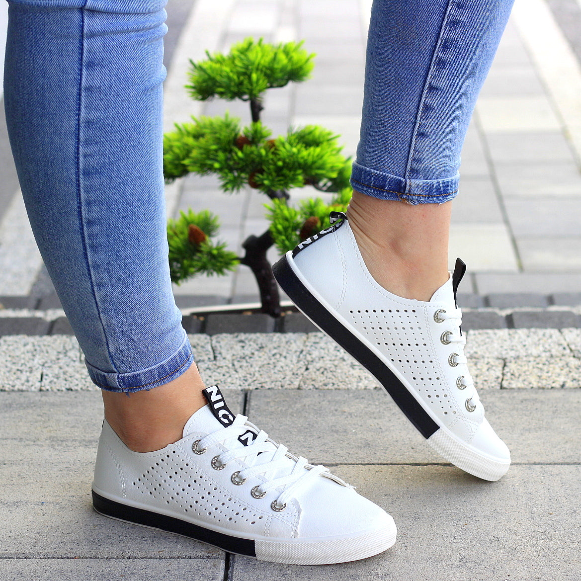 Białe trampki mięciutkie wsuwane slim na wygodnej podeszwie z ażurowym wzorem