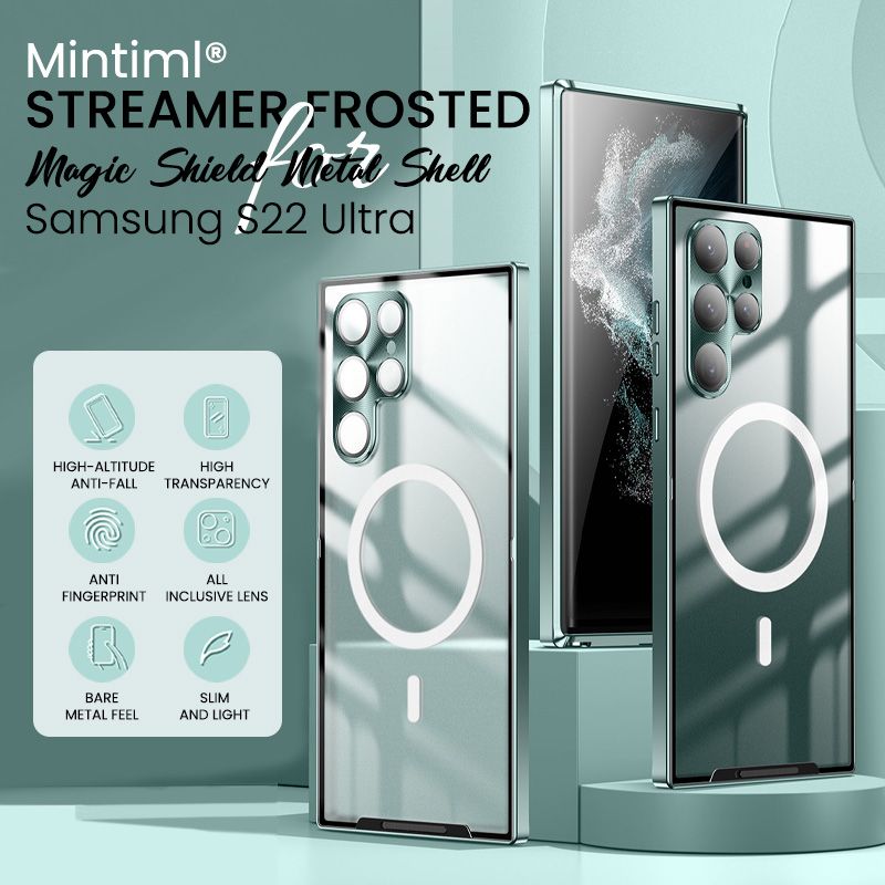 Specyfikacja Materiał: PC + metal. Kolory: Czarny, Niebieski, Zielony, Srebrny, Fioletowy Opakowanie zawiera. 1 *Mintiml® etui metalowe do Samsung S22 Ultra.