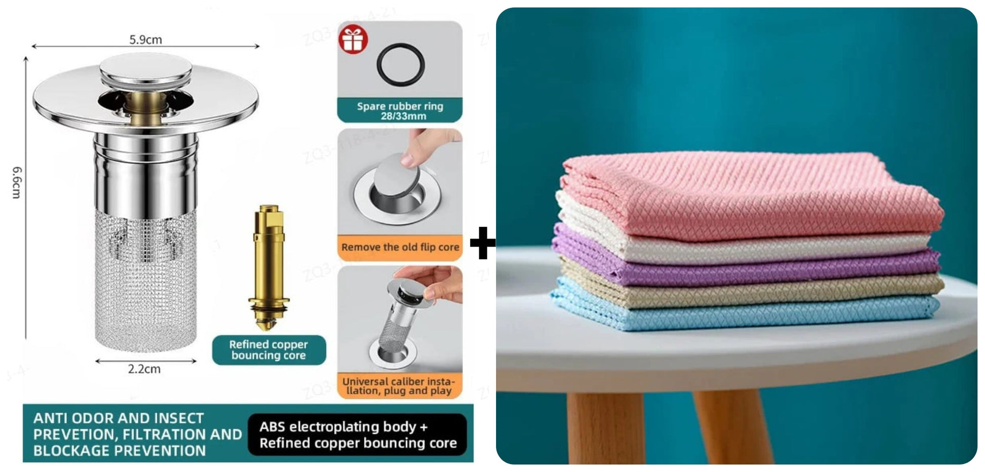 W przeciwieństwie do zwykłego odpływu z przyciskiem, ta zatyczka do odpływu ma wewnątrz sitko zapobiegające zatykaniu, które starannie zbiera włosy i zapobiega zatykaniu się odpływu. Żadna biżuteria, pierścionki, brud i inne rzeczy nie dostaną się do rury odpływowej.