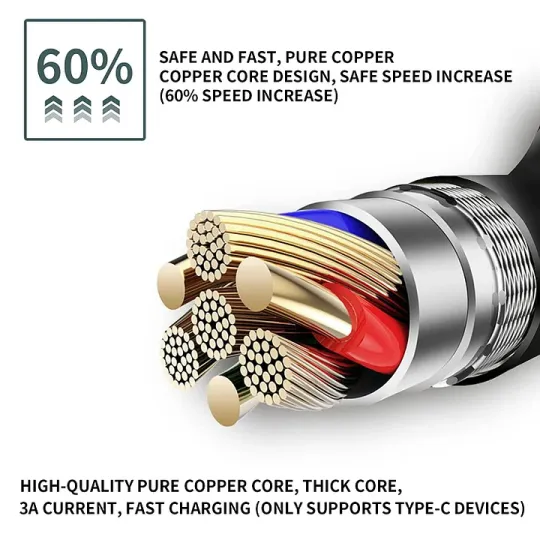 - Γρήγορη φόρτιση και συγχρονισμός: Το μέγιστο ρεύμα εξόδου μπορεί να φτάσει τα 3A (συνολικά, όχι και τα δύο άκρα), φορτίζει πιο γρήγορα από τα περισσότερα καλώδια 3 σε 1 και λειτουργεί καλύτερα με tablet και συσκευές γρήγορης φόρτισης, υποστηρίζει υποδοχή MONO iOS.