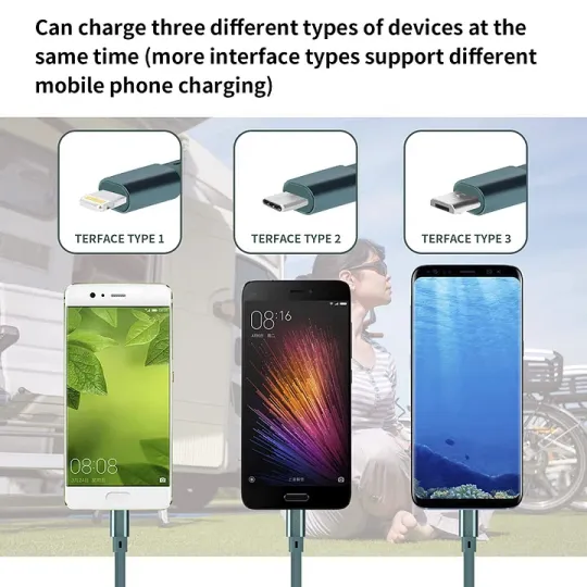 - Ευκολία: Το ιδανικό μήκος των 1,2 μέτρων είναι ιδανικό για χρήση στο σπίτι, στο γραφείο, στο αυτοκίνητο, ενώ ταξιδεύετε κ.λπ. Το αναδιπλούμενο καλώδιο 3 σε 1 μπορεί να διπλωθεί πολύ εύκολα και να αποθηκευτεί στην τσάντα σας, στην τσάντα του φορητού υπολογιστή, στην τσέπη σας κ.λπ.