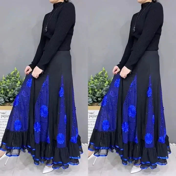 🌷🌹Νέα κεντημένη μακριά φούστα χορού με ψηλή μέση-LT