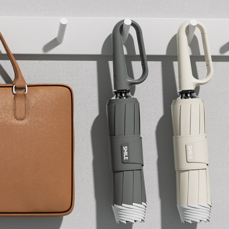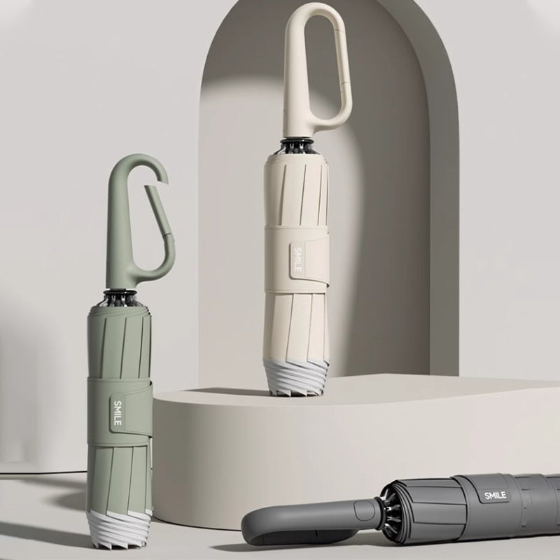 KOMPAKTIŠKAS IR NEŠIOJAMAS – skėtis su šviesą atspindinčiomis saugos juostelėmis ir žiedine sagtimi yra kompaktiškas ir nešiojamas, todėl jį lengva pasiimti su savimi, kad ir kur eitumėte. Sulankstytas jis tampa kompaktiško dydžio ir telpa į krepšius, kuprines ar portfelius.