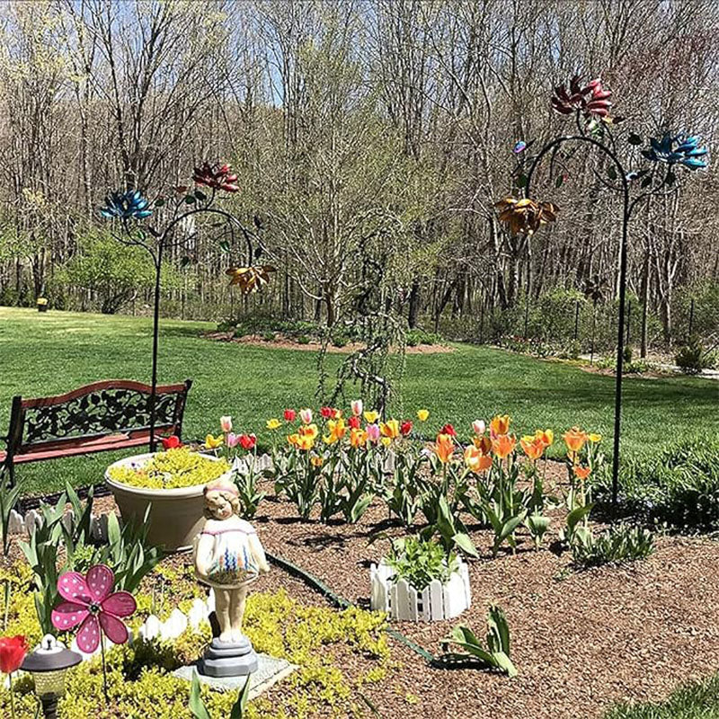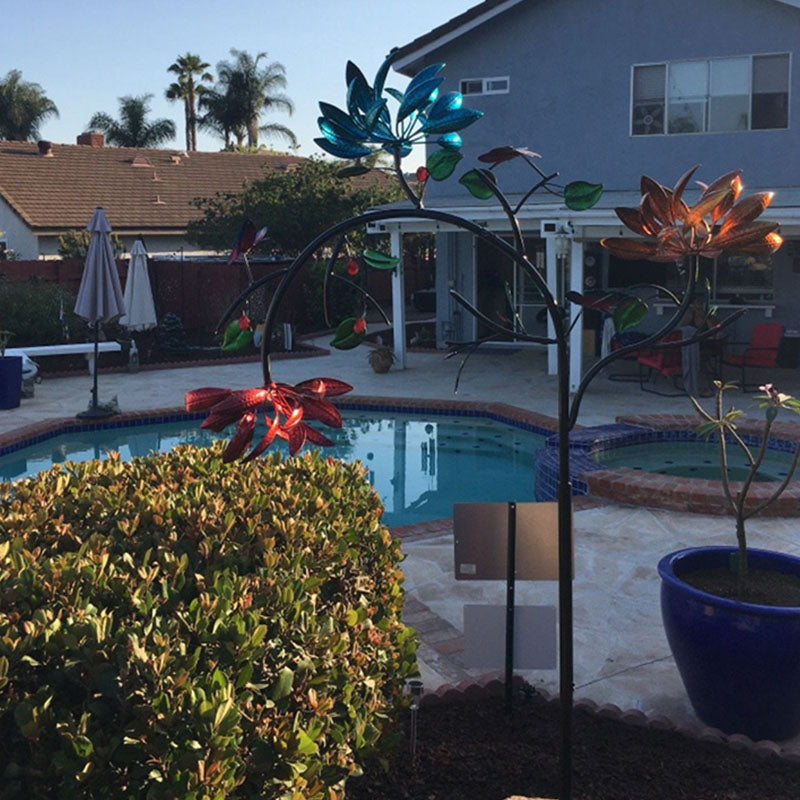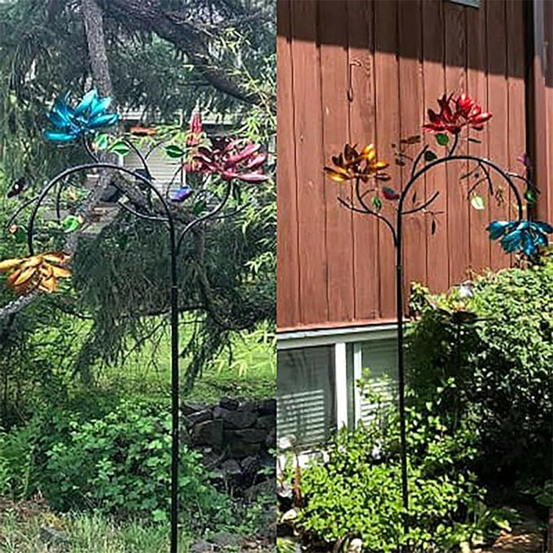 Θα απολαύσετε έναν όμορφο κινητικό ανεμόμυλο σε εξωτερικούς χώρους με τρεις σειρές από κίτρινα, ροζ και μπλε λουλούδια και τόνους πεταλούδας. Το εντυπωσιακό, πολύχρωμο λουλουδάτο μοτίβο κινείται με κάθε ριπή ανέμου.