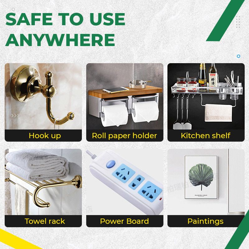 Χρήσεις -     παγωμένο γυαλί, μάρμαρο, βερνικωμένο ξύλο, μαλακά μεταλλικά πάνελ, πλακάκια, μωσαϊκά. Είναι καλύτερο να χρησιμοποιήσετε μια αόρατη βάση τοίχου. και είναι ιδανικό για καλοκαιρινά σοβατεπί, λωρίδες πολυστερίνης, περβάζια παραθύρων, κρεμάστρες κ.λπ.