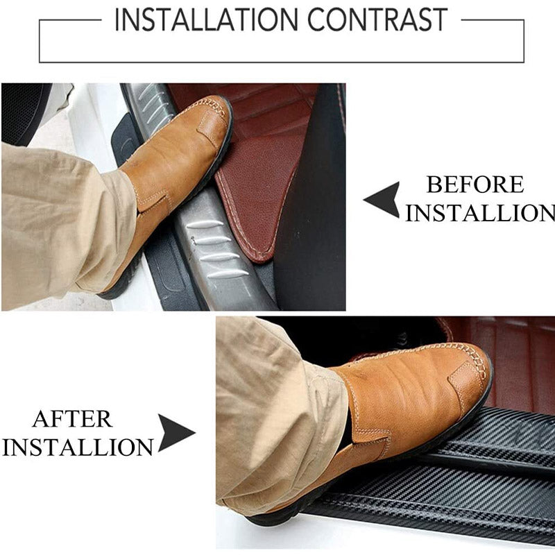 - Aukštos kokybės medžiaga: juodas 4D anglies pluošto lipdukas. Slenksčio dangtelis pagamintas iš vinilo plėvelės su anglies pluošto tekstūra, kuri yra atspari vandeniui ir atspari aukštai temperatūrai. Po kelių bandymų aukštoje temperatūroje ir lietingomis dienomis nustatėme, kad jis neteka ir netrūkinėja. Mūsų tikslas yra aukšta kokybė ir tikime jumis.