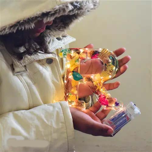 Τα μεγάλα γράμματα της επιτραπέζιας λάμπας LED είναι κατασκευασμένα από φιλικό προς το περιβάλλον υλικό. Ταυτόχρονα, τα γράμματα είναι γεμάτα με όμορφα αποξηραμένα λουλούδια, το φως του γράμματος είναι ανθεκτικό στις κρούσεις, φιλικό προς το περιβάλλον, χωρίς ρύπανση, άγευστο και ασφαλές για το ανθρώπινο σώμα. Το νυχτερινό φως εκπέμπει ένα απαλό, ομοιόμορφο και χωρίς τρεμόπαιγμα φως, στο οποίο μπορείτε να κοιμηθείτε με ασφάλεια.