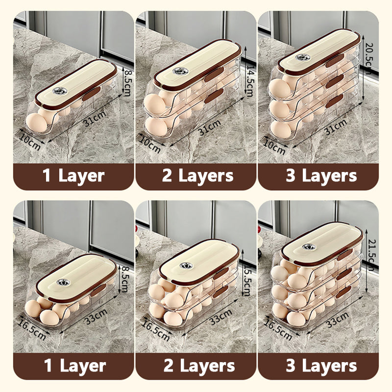ΣΗΜΕΙΩΣΗ ΕΝΗΜΕΡΩΣΗ: Μπορείτε εύκολα να επισημάνετε πότε τα αυγά μπήκαν στο organizer με το κουμπί εγγραφής χρόνου αποθήκευσης. Η διάφανη πλαστική κατασκευή παρέχει εξαιρετική ορατότητα, ώστε να μπορείτε να δείτε με μια ματιά πόσα αυγά σας έχουν απομείνει, μειώνοντας τη σπατάλη φαγητού και τις περιττές μετακινήσεις στο κατάστημα.
