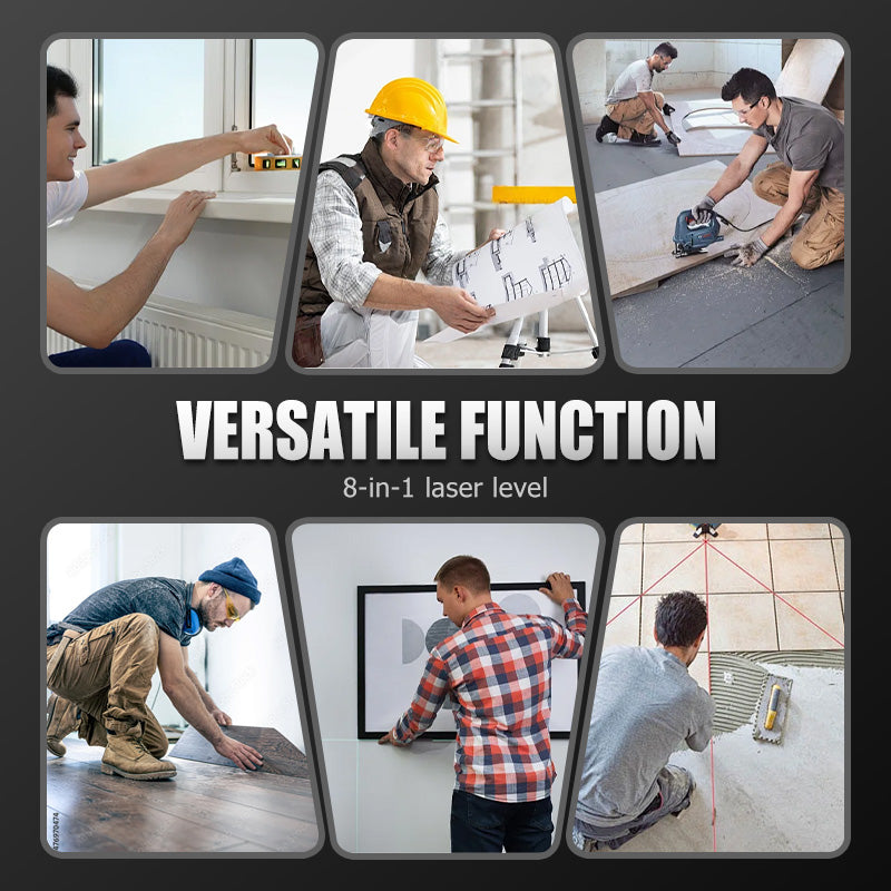 DVIGUBAS LAZERINIS IR LED EKRANAS: Įrengtas dvigubomis lazerio linijomis ir dideliu, aiškiu LED ekranu, užtikrinančiu ryškų duomenų matomumą realiuoju laiku, jis pagerina darbo efektyvumą tiek patalpose, tiek lauke, bet kokiomis apšvietimo sąlygomis.