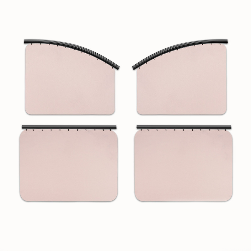 Pakuotės turinys: 4 vnt. / 2 vnt.* automobilio stogeliai nuo saulės ir užuolaidos