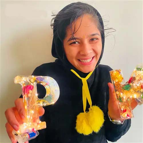 Apšvieskite savo erdvę žaviu mūsų gėlių naktinės lemputės spindesiu, kruopščiai pagaminto iš džiovintų gėlių, įvyniotų į krištolo skaidrumo dervą. Šis suasmenintas abėcėlės dizainas suteikia natūralumo ir elegancijos bet kuriam kambariui, todėl tai puiki dovana ar unikalus dekoro elementas.