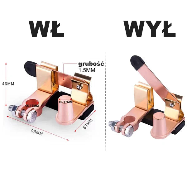 【OSZCZĘDNOŚĆ ENERGII ELEKTRYCZNEJ】 Ten górny słupek nożowy przełącznik główny jest używany do akumulatora w celu odizolowania i zabezpieczenia układu elektrycznego, wyeliminowania jakiegokolwiek poboru mocy z akumulatora, gdy pojazd lub łódź nie są używane, zatrzymania niepożądanego rozładowania akumulatora i zapobiegania kradzieży lub nieautoryzowanemu użyciu. Szeroko stosowany do akumulatorów samochodów osobowych, ciężarowych, łodzi lub kamperów, a także innych urządzeń elektrycznych.