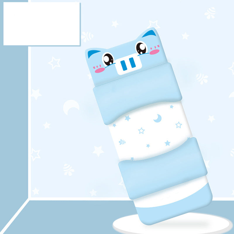 Nežen trikotni naklon na obeh straneh vzglavnika varno preprečuje, da bi vaš dojenček med aktivnim gibanjem padel iz postelje ali se med spanjem premetaval. Pomaga tudi pri pravilni spalni drži, ko ležite na boku. Skrita zadrga na hrbtni strani prevleke za vzglavnik zagotavlja urejen videz in omogoča enostavno odstranjevanje in pranje prevleke ter prilagajanje polnila.