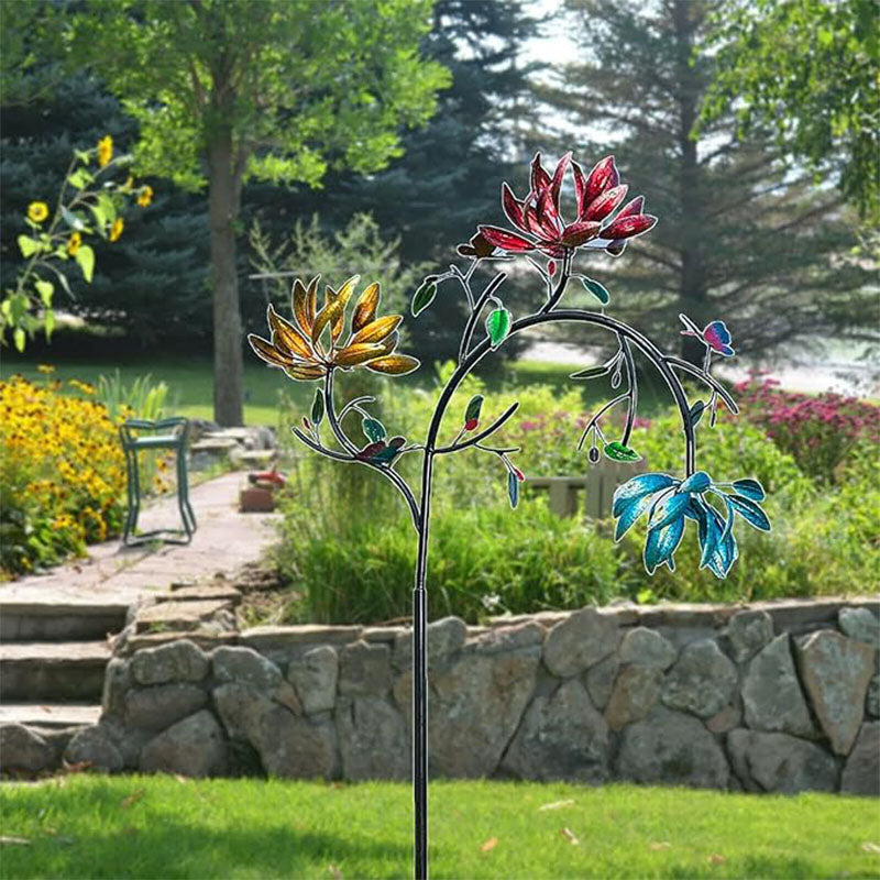 Mėgausitės nuostabiu kinetiniu vėjo malūnu lauke su trijų pakopų geltonų, rožinių ir mėlynų gėlių ir drugelių akcentais. Akį traukiantis, spalvingas gėlių raštas juda su kiekvienu vėjo gūsiu.
