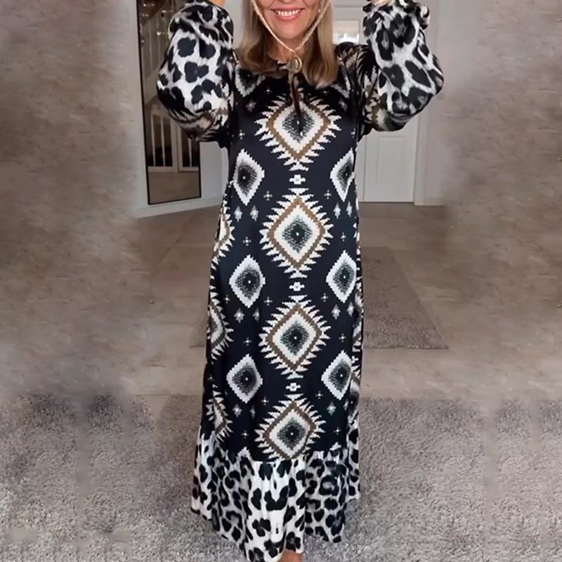 Į paketą įeina: 1 * Moteriška bohemiška laisvalaikio spausdinta suknelė ilgomis rankovėmis