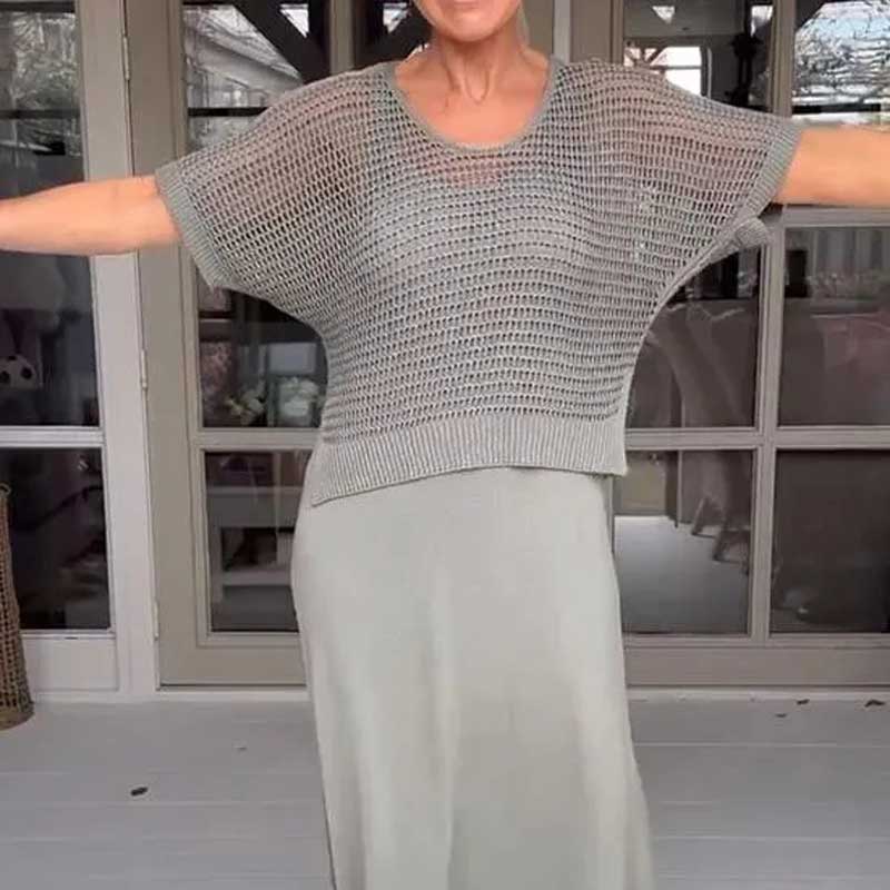 Pasinerkite į nesenstančią eleganciją su mūsų moteriška nerta dviejų dalių suknele, sukurta be vargo patobulinti jūsų vasaros garderobą.