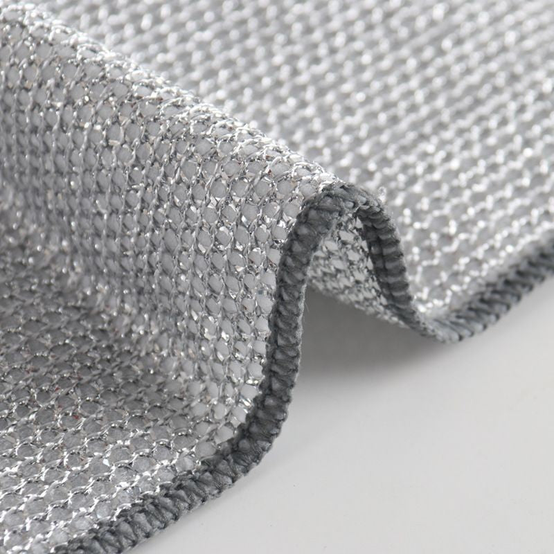 ΕΥΚΟΛΟ ΚΑΘΑΡΙΣΜΟ - Η μεταλλική μας πετσέτα πιάτων αλλάζει το παιχνίδι όταν πρόκειται για εύκολο καθάρισμα. Έχει σχεδιαστεί ειδικά για να είναι ανθεκτικό στο λάδι και τη βρωμιά και μπορεί να χρησιμοποιηθεί υγρό ή στεγνό, κάνοντας τις προσπάθειες καθαρισμού σας πολύ πιο αποτελεσματικές. Επιπλέον, δεν παραμένουν ίχνη μετά τη χρήση. Χάρη στους πυκνούς πόρους του, δημιουργεί άφθονο αφρό και μπορεί να χρησιμοποιηθεί πολλές φορές χωρίς λεκέδες ή ζημιές.