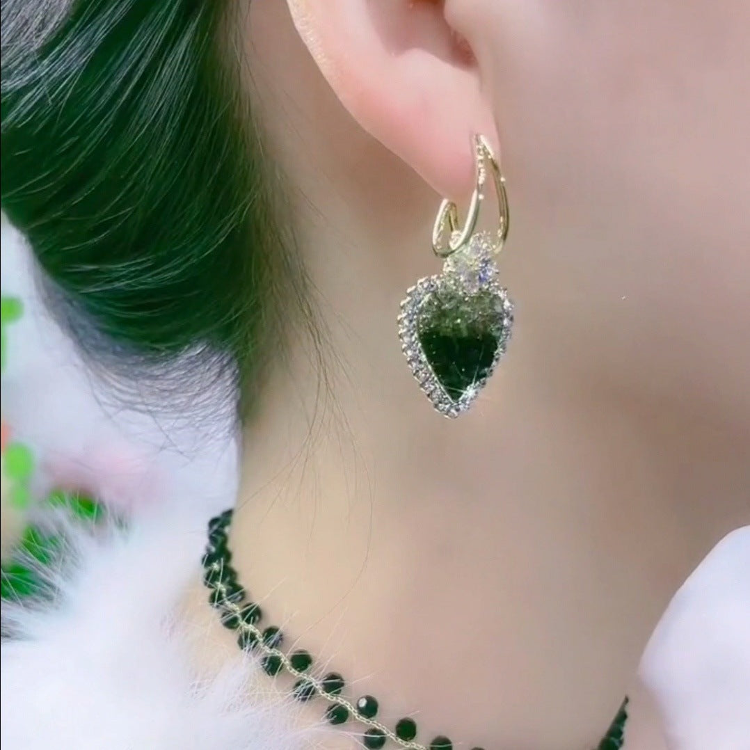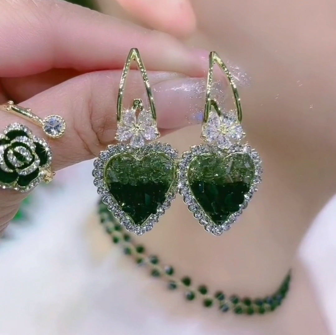 Zelené náušnice s krištáľovými srdiečkami-SK