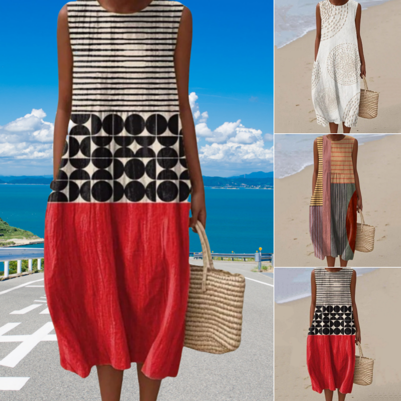 Į pakuotę įeina: 1 * madinga moteriška suknelė be rankovių apvaliu kaklu