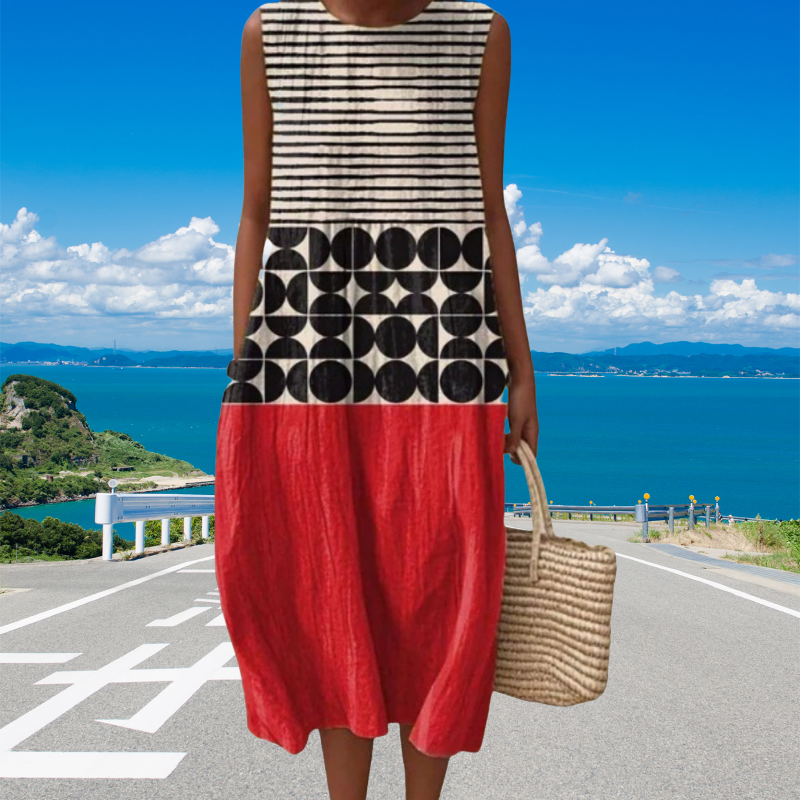 Madinga moteriška suknelė be rankovių su apvalia iškirpte-LT
