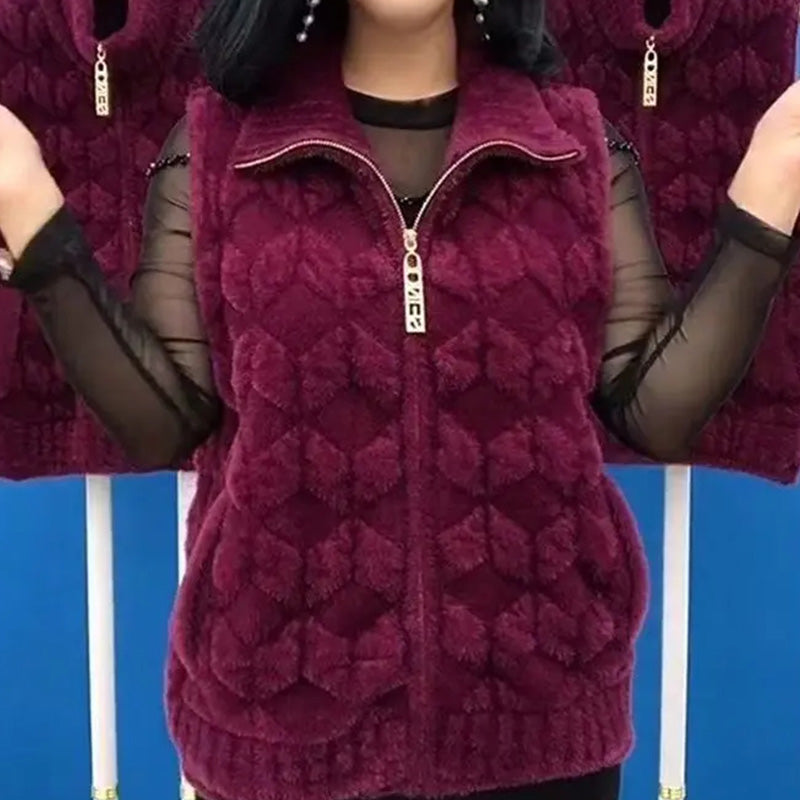 1 * Zimný zimný brezrokavnik iz umetnega krzna za toplo modo brez rokavov