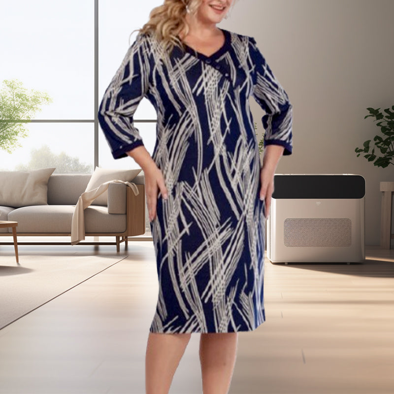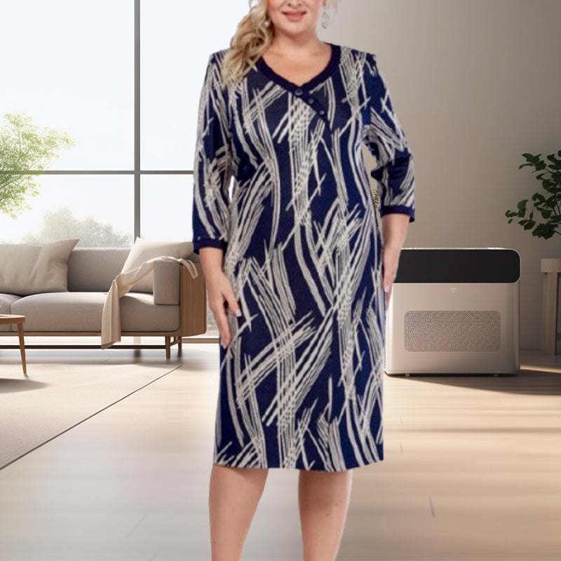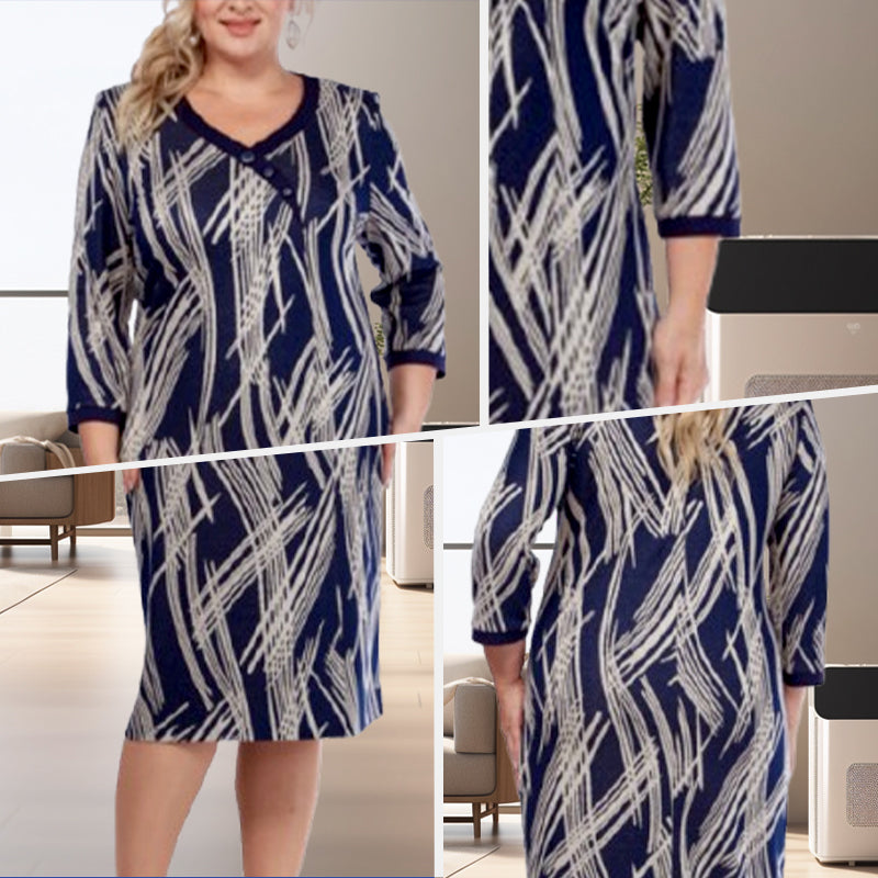🌸Elegantiškos moteriškos suknelės su abstrakčiais raštais ir septyniomis rankovėmis-LT