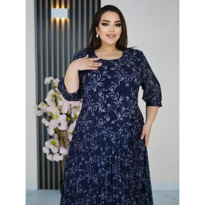 Į pakuotę įeina: 1 * apvalios iškirptės, 3/4 rankovių marginta maksi suknelė