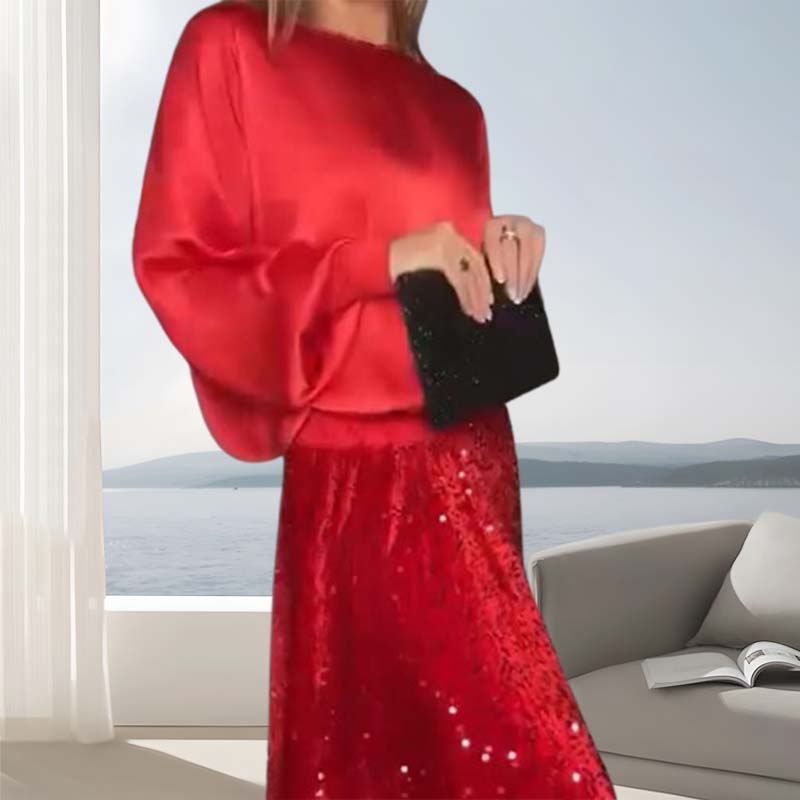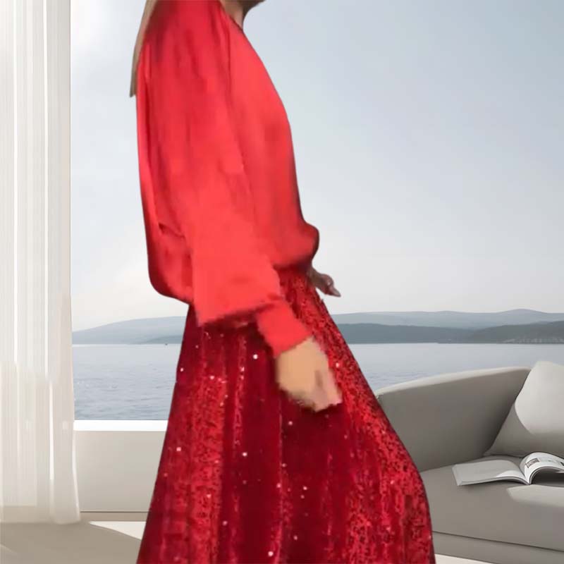 Γυναικεία μακρυμάνικη φούστα δύο τεμαχίων με παγιέτες-GR