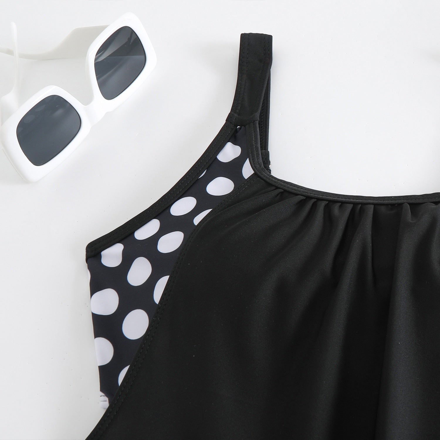 Į komplektą įeina: 1* moteriškas dviejų dalių maudymosi kostiumėlis su taškeliais