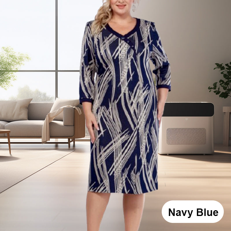 🌸Κομψά γυναικεία φορέματα με αφηρημένα μοτίβα και επτά μανίκια-GR