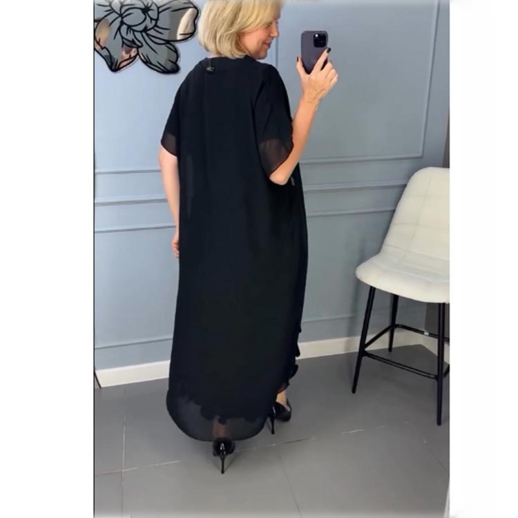 Γυναικείο κομψό μαύρο φόρεμα με λαιμόκοψη V και ακανόνιστο σακάκι, σετ δύο τεμαχίων-GR