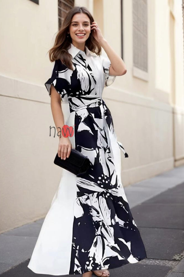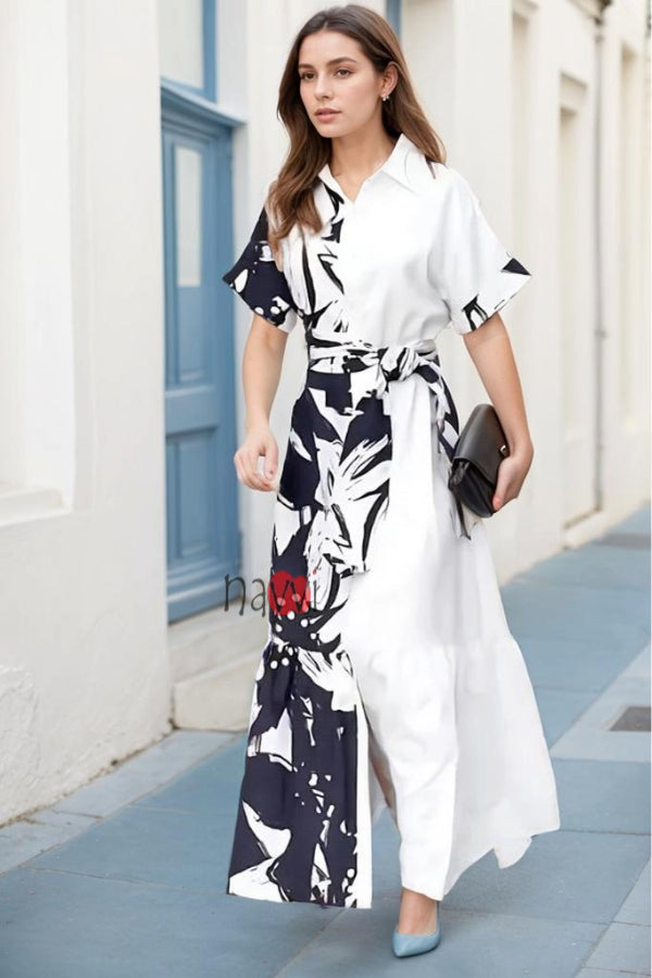 Ασπρόμαυρο φόρεμα-πουκάμισο με πέτα-GR