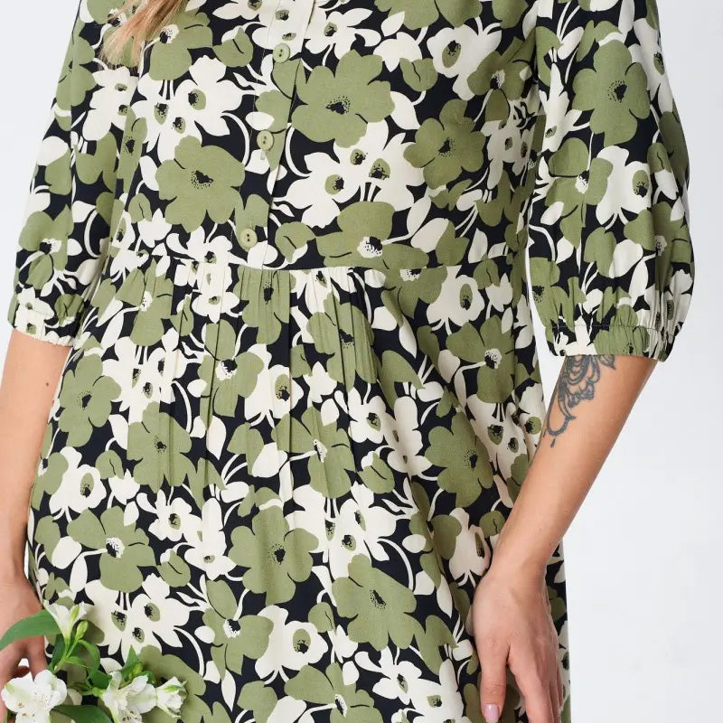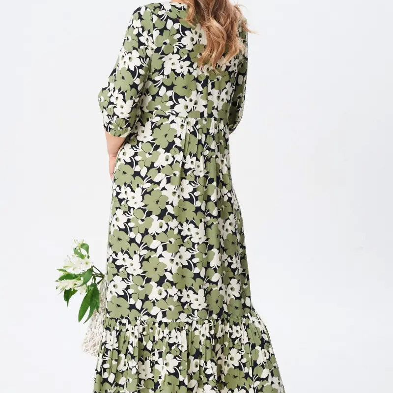 ΣΤΥΛΙΣΤΙΚΗ ΛΟΥΛΟΥΔΙΚΗ ΕΚΤΥΠΩΣΗ: Αυτό το φόρεμα διαθέτει μια όμορφη πράσινη φλοράλ εκτύπωση που θα προσθέσει μια πινελιά κομψότητας της φύσης στην γκαρνταρόμπα σας. Το περίπλοκο μοτίβο είναι ζωντανό αλλά και διακριτικό, ιδανικό για κάθε χαλαρή έξοδο ή κοινωνική εκδήλωση. Είναι ένα ευέλικτο κομμάτι που συνδυάζεται αβίαστα με σανδάλια, αθλητικά παπούτσια ή τακούνια, καθιστώντας το απαραίτητο για την άνοιξη και το καλοκαίρι.