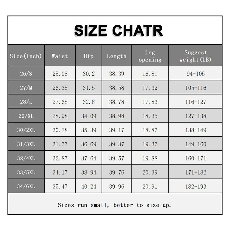 Dydžiai: 26/S, 27/M, 28/L, 29/XL, 30/2XL, 31/3XL, 32/4XL, 33/5XL, 34/6XL