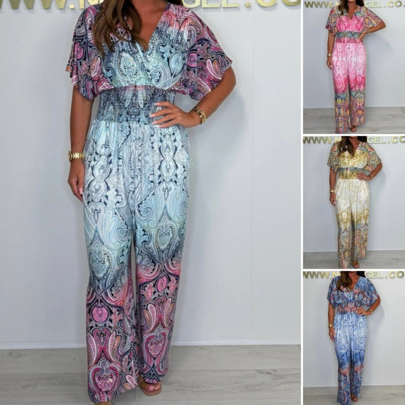 ΕΛΑΦΡΙΟ ΚΑΙ ΑΝΕΤΟ ΣΤΥΛ - Αυτή η ολόσωμη φόρμα συνδυάζει ένα φαρδύ, κοντομάνικο τοπ με φαρδύ παντελόνι για μια ανάλαφρη και κολακευτική σιλουέτα, ιδανική για όλη την ημέρα, από τις δουλειές του σπιτιού μέχρι μια βραδινή έξοδο.