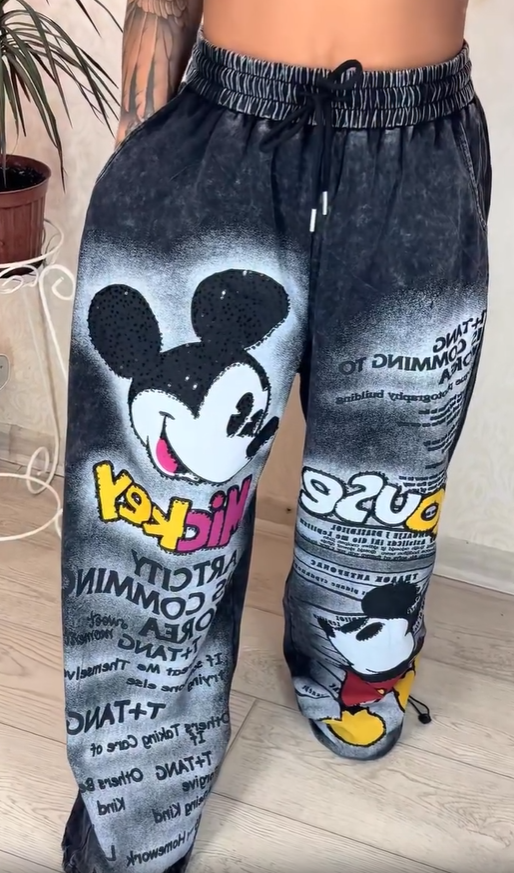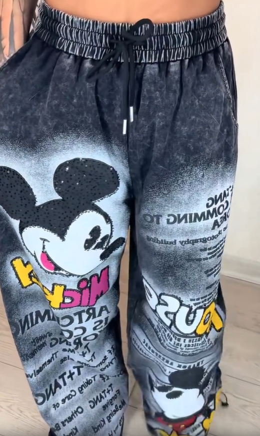 Medžiaga: audinio sendinta tekstūra suteikia animaciniam raštui trimatesnį vaizdą, natūraliai krenta einant ir leidžia nevaržomai judėti. Jis suteikia komforto ilgų apsipirkimo kelionių ir treniruočių metu, kartu derindamas vaikišką paprastumą su praktiškumu.