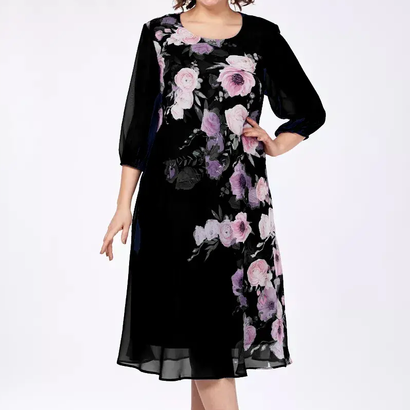 Į pakuotę įeina: 1 * elegantiška moteriška apvalios iškirptės gėlių rašto suknelė