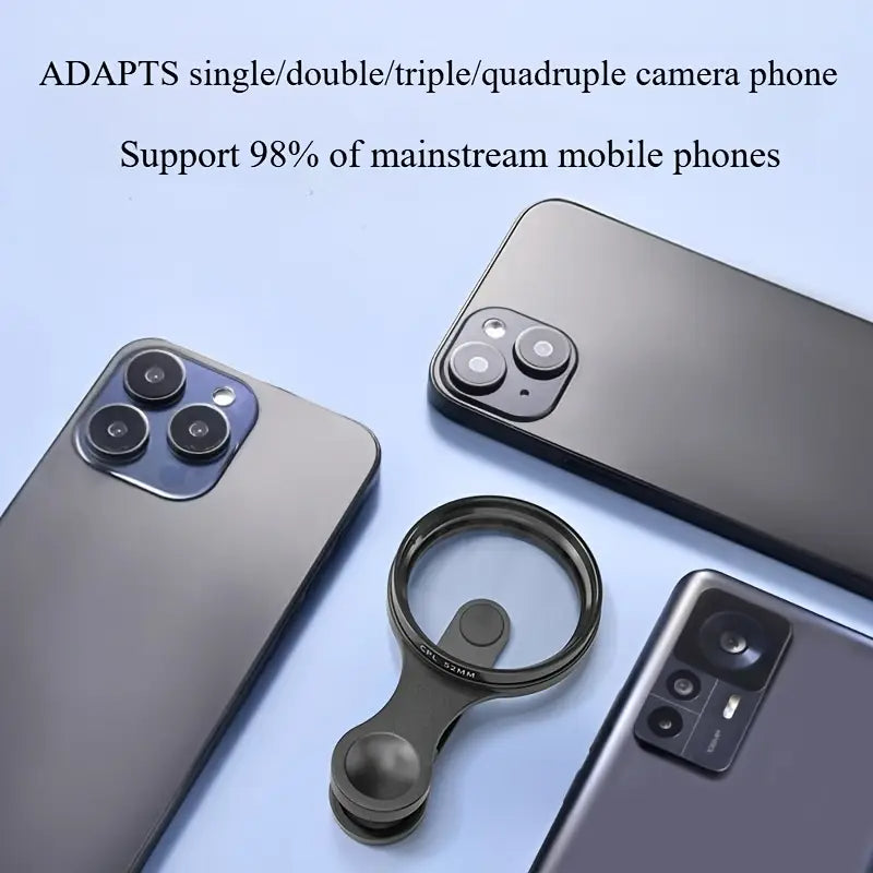 Pakelkite savo mobiliojo fotografavimo įgūdžius į kitą lygį su mūsų aukščiausios kokybės 52 mm CPL objektyvu jūsų telefonui. Užfiksuokite skaidrius, ryškius vaizdus, kurie konkuruoja su profesionaliomis nuotraukomis, paversdami kiekvieną nuotrauką nuostabiu šedevru.