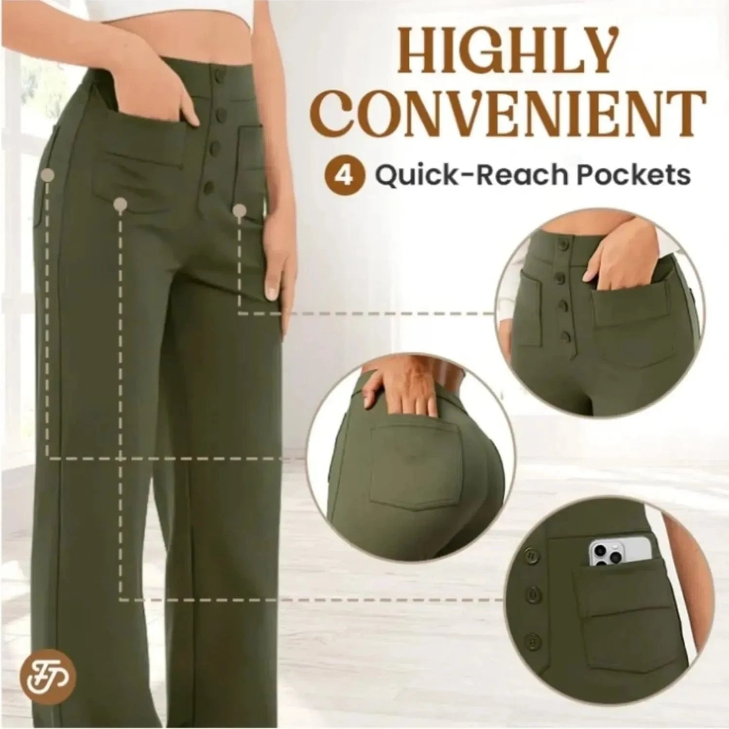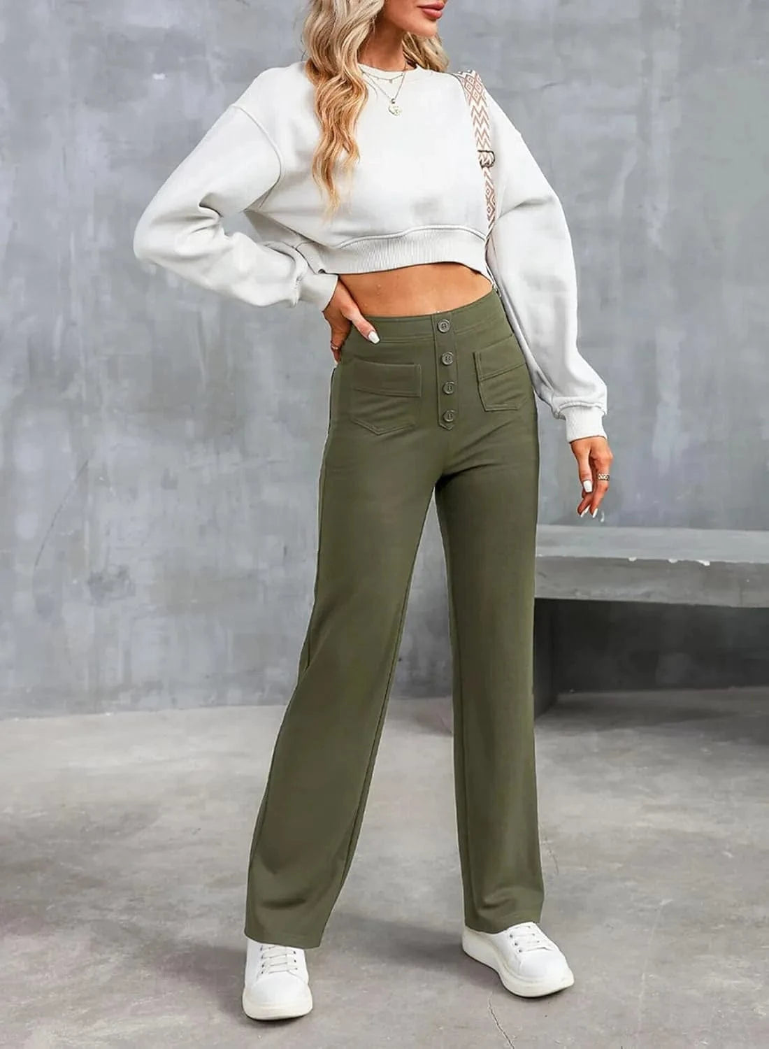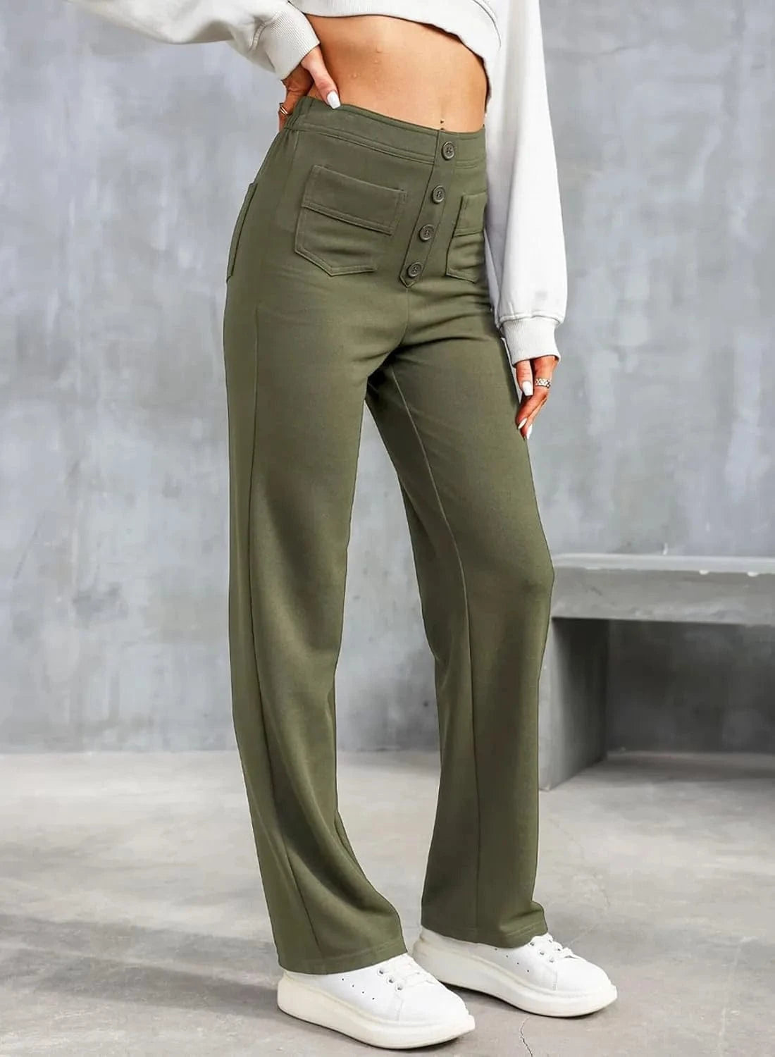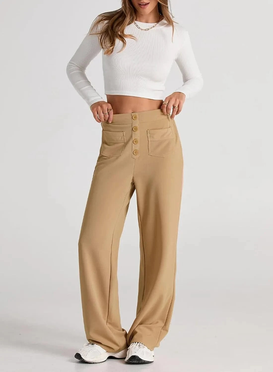 ♻ Stilingos mygtukų detalės: kas sakė, kad mygtukai turi būti tik funkcionalūs? Mūsų kelnės pasižymi gražiais sagų akcentais.
