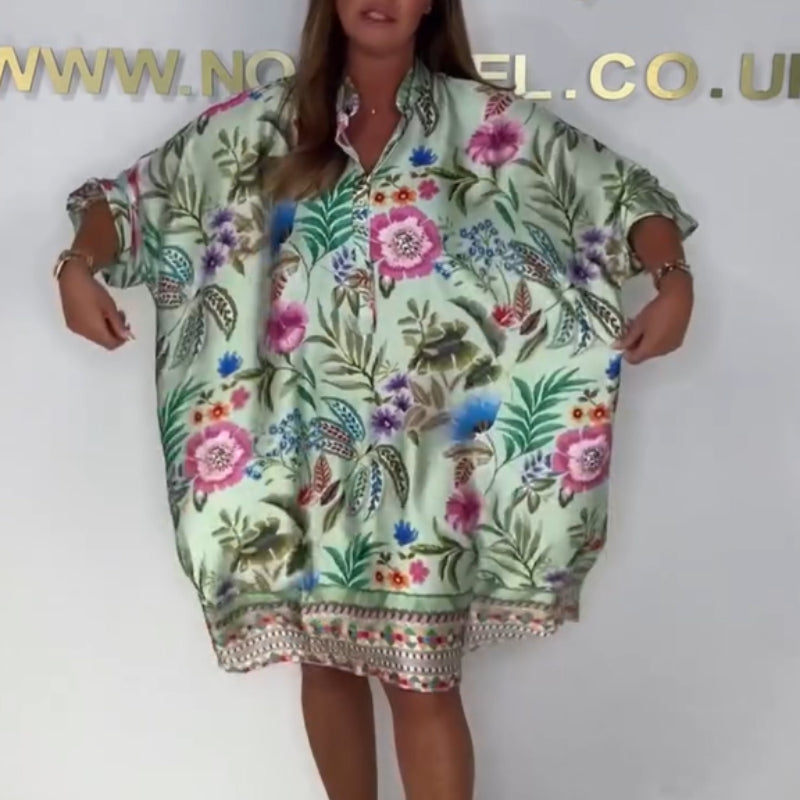 GRAŽUS GĖLIŲ RAŠTAS: Ši suknelė pasižymi elegantišku gėlių raštu, kuris suteiks jūsų garderobui natūralaus grožio akcentą. Ryškios spalvos ir detalūs raštai paverčia šį drabužį unikaliu bet kokiai progai. Akį traukiantis raštas išskirs jus iš minios.