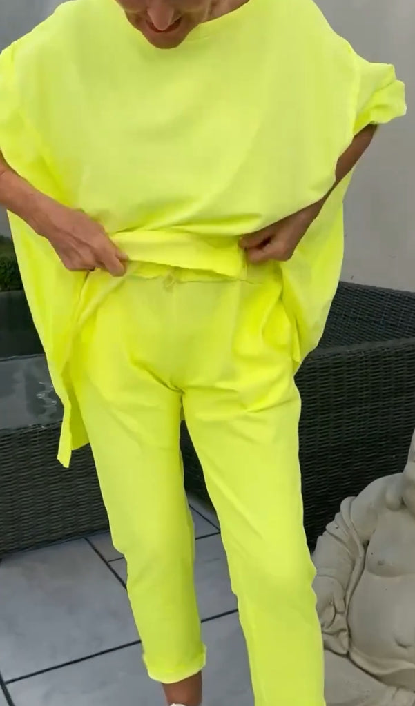 Vasarinis moteriškas apvalios iškirptės, šviesios spalvos laisvalaikio kostiumas-LT