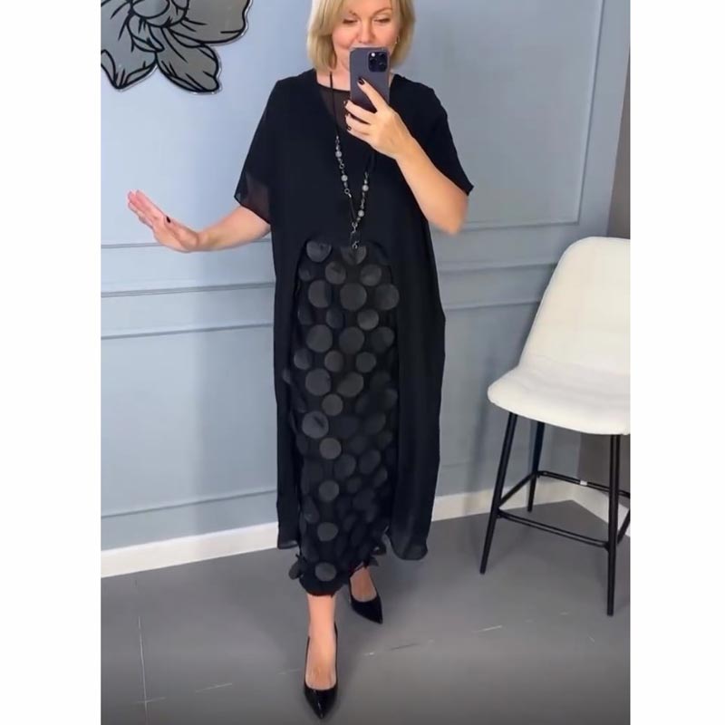 Nesenstanti JUODA SPALVA: Klasikinė juoda spalva daro šį komplektą nesenstančiu pasirinkimu, leidžiančiu jį lengvai derinti su papuošalais ar batais, kad įvaizdis būtų įvairus, ir užtikrinant, kad jis išliktų jūsų garderobo pagrindu.