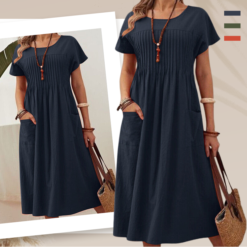 Pakuotės turinys: 1 * Moteriška klostuota suknelė su trumpomis rankovėmis ir kišenėmis